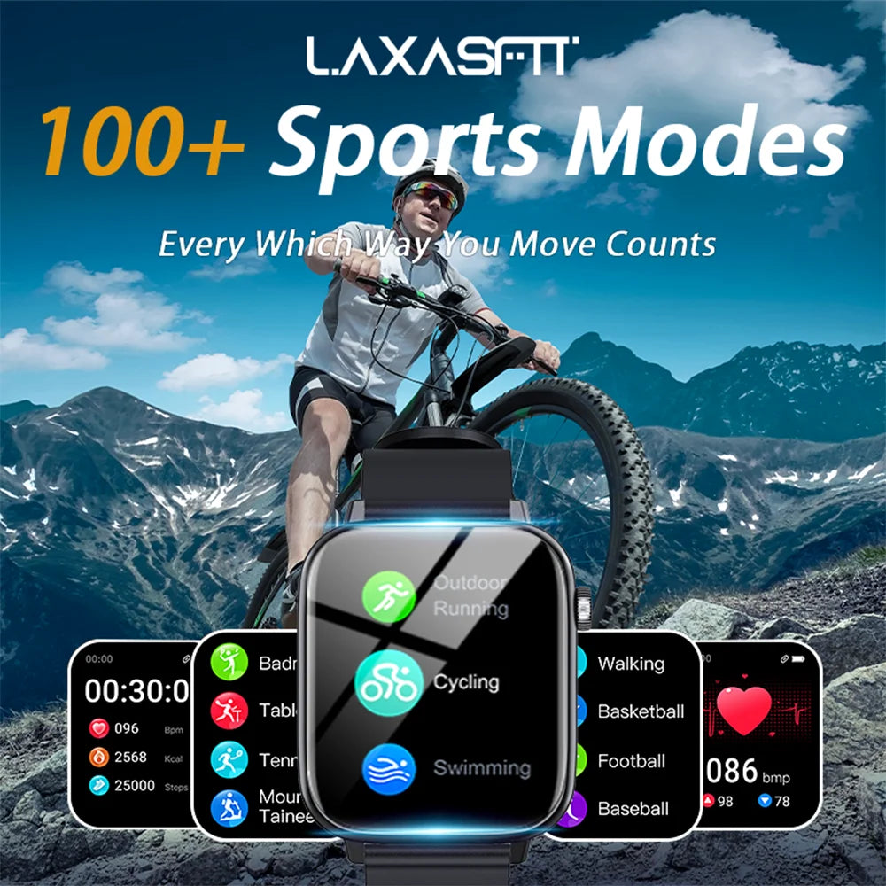 LAXASFIT Bluetooth Talk Smart Watch Message Reminder Sleep Monitoring IP68 Waterproof 100+ Sport Mode Smart Watch Android IOS