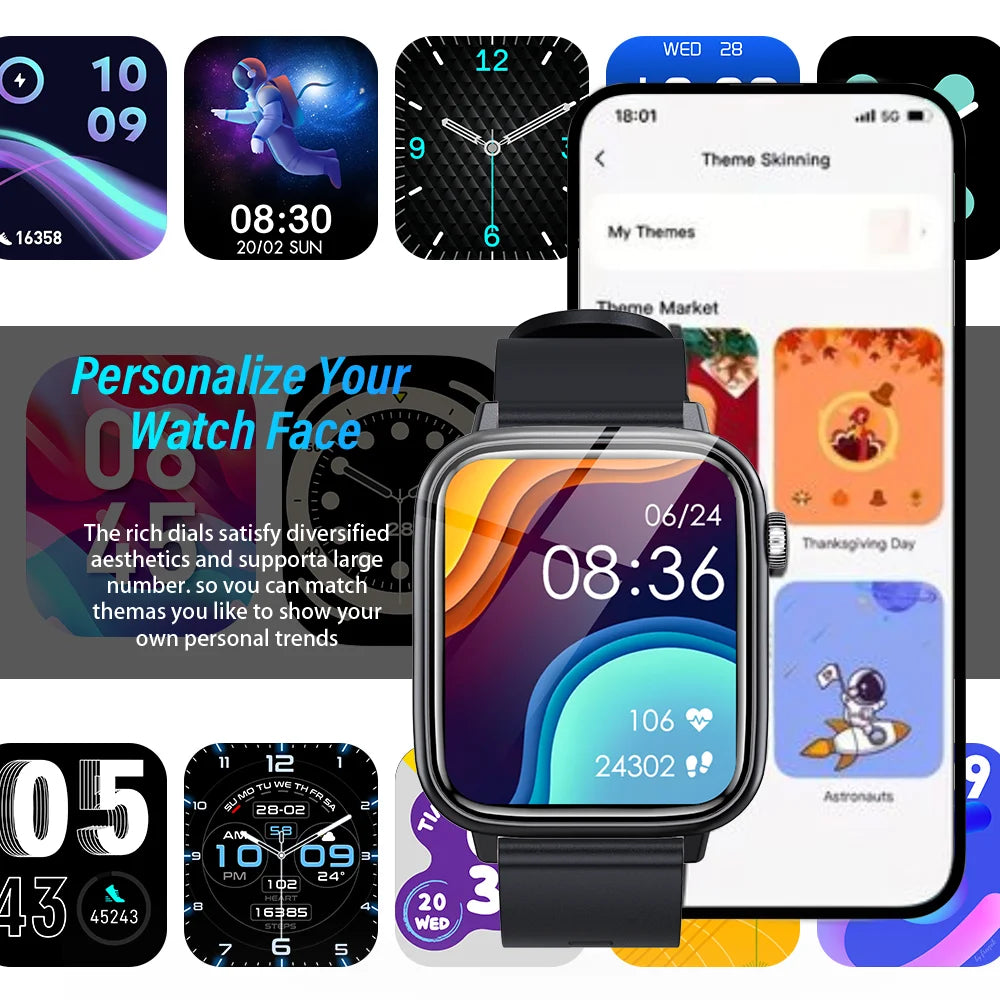 Synchronize with your phone, get SMS/calls/app notifications on your wrist and control your phone's music playback/camera. This smartwatch will also provide sedentary reminder, do not disturb, to-do list and weather forecast function, and can set alarm and stopwatch.