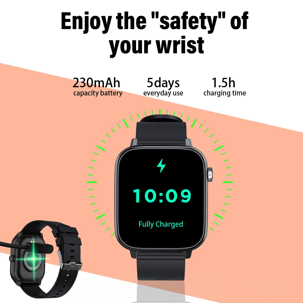 This ultra-compact smartwatch has a built-in 230 mAh ultra-large capacity battery that lasts up to 10 days in battery saver mode.